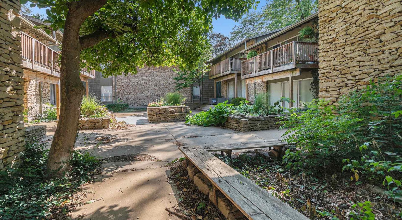 Discover the exceptional lifestyle at Corinth Valley, a distinctive mid-century modern apartment community near Kansas City where comfort, style and nature converge. Nestled in a tranquil setting yet just minutes from urban conveniences, Corinth Valley offers studios, one- and two-bedroom homes featuring luxury touches like decorative fireplaces, built-in shelving, and granite countertops—all designed to elevate everyday living. Private yards, large balconies and lush outdoor spaces invite you to relax and entertain, while amenities including a swimming pool, BBQ area and fitness center provide recreation and social connection right in your backyard.